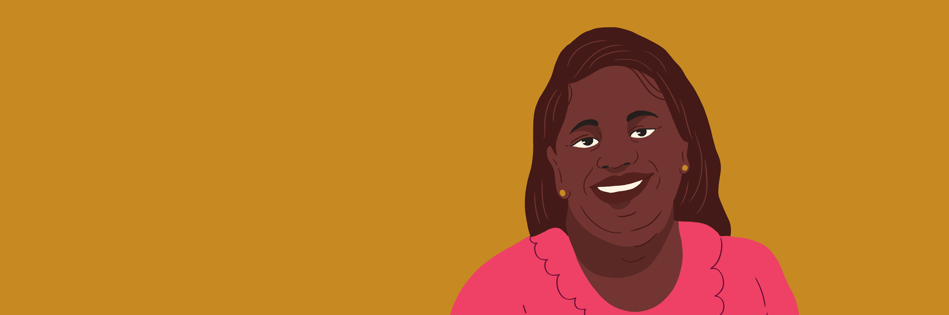 graphic portrait of Carmen Silva. She has brown hair and skin, wearing a yellow blouse.