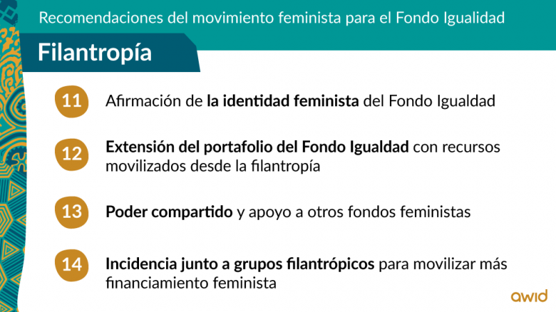 Lee el Informe de AWID «Grandes esperanzas y grandes expectativas: recomendaciones del movimiento feminista para el Fondo Igualdad», para ver cómo lxs activistas mismxs definen lo que se necesita en este momento y cómo lxs donantes pueden apoyar las realidades feministas en toda su riqueza, audacia y diversidad.