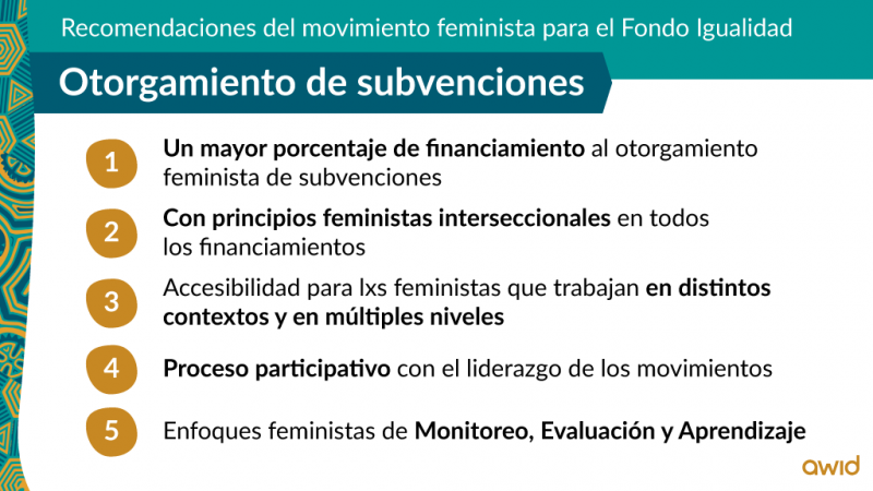 - otorgamiento de subvenciones para movimientos y organizaciones feministas;