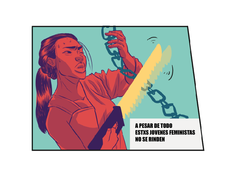 Este cómic se creó a partir del informe "Valientes, Creativas y Resilientes: La situación a nivel global de la Organización de Jóvenes Feministas", una colaboración de AWID y FRIDA.