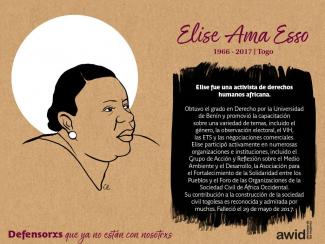 Elise Ama Esso 20 November 2020 Read in: Inglés Francés Español Category Derechos civiles y políticos Region África África Subsahariana Date of death / disappearance 2017