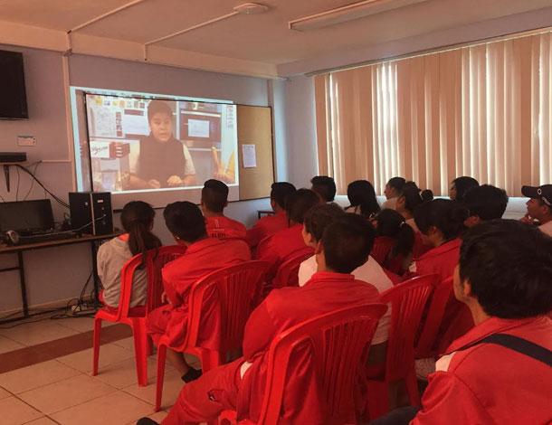 Sentimos Diverso utilise des produits éducatifs comme stratégie pour aborder les droits sexuels et reproductifs. El Canguilazo est un videoblog pour les jeunes. Ici observé par des étudiant-e-s d'un collège du nord de Quito.