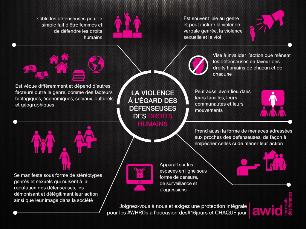 Cet ensemble de supports graphiques mettent en exergue des composants clés d’une protection intégrale pour les défenseuses des droits humains. Joignez-nous en partageant ces supports graphiques et en attirant l'attention sur la nécessité de fournir une protection intégrale pour les défenseuses des droits humains !