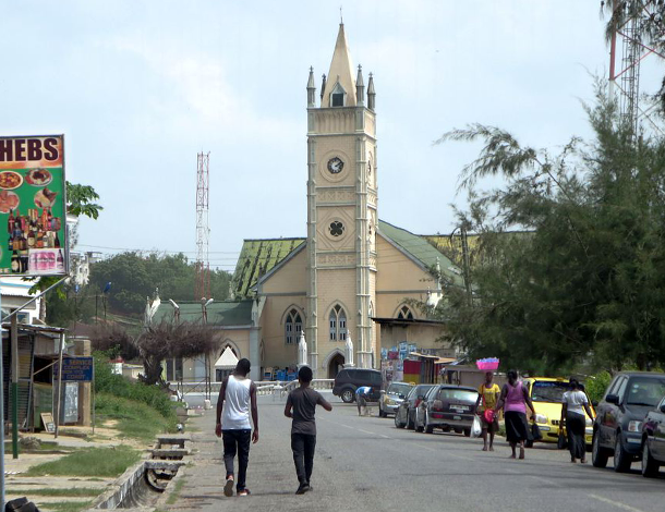 Wesley Methodist Church stands on Chapel Square in Cape Coast, Ghana.