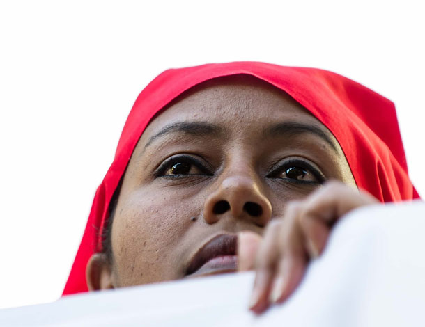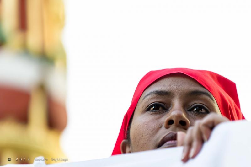 Women migrants protest in Lausanne, Switzerland, on June 21, 2014