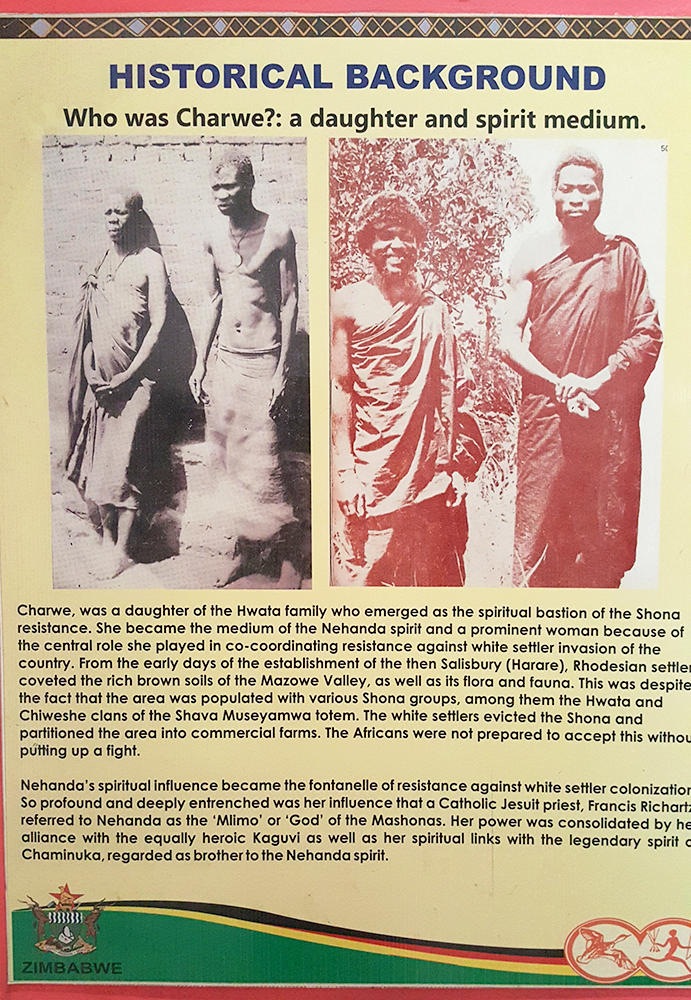 On my first day in Zimbabwe I visited the National Museum of Science. Above the doorway of the anteroom hung a picture of Nehanda Charwe Nyakasikana, with the caption ‘MAPFUPA ANGU ACHAMUKA’.