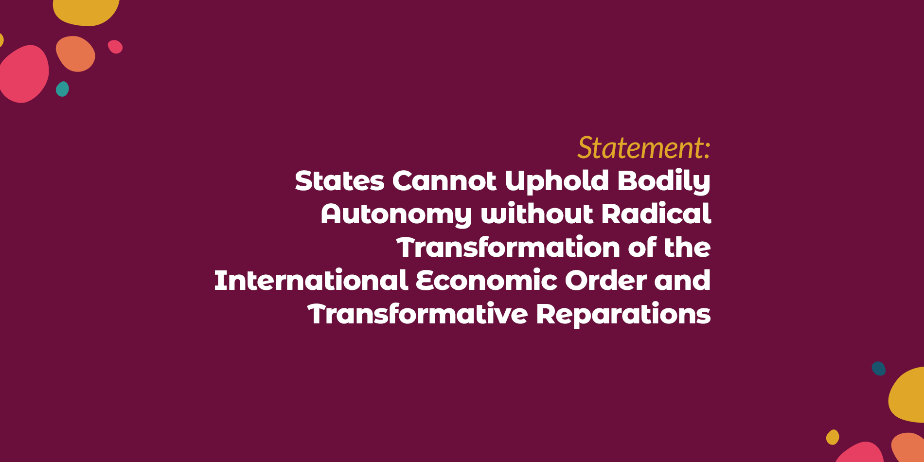 We reiterate our call on States to ensure the material conditions necessary for the enjoyment of bodily autonomy for all. Without a radical transformation of our international economic order and transformative reparations, State support for gender equality and bodily autonomy is just lip service.