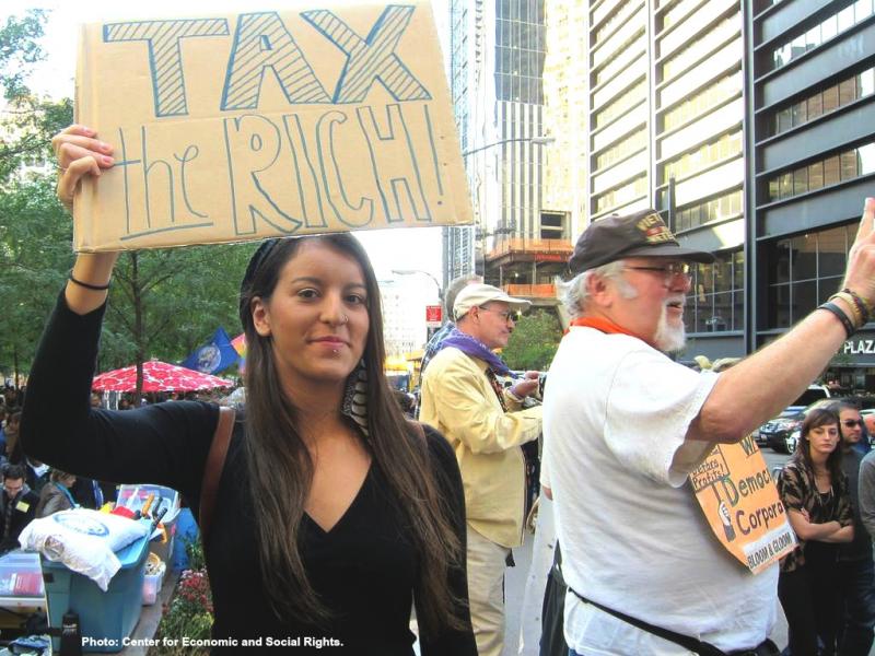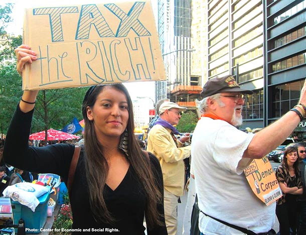 But taxing the rich 1%, though crucial to raise revenues, still only addresses the consequences of inequality, not the root causes that enabled such an outrageous concentration of wealth in hands of the few to occur in the first place. Challenging the lack of regulation of the growing financial economy that allows big companies and rich individuals to pay minimal or no tax is essential to addressing social inequality and human rights.