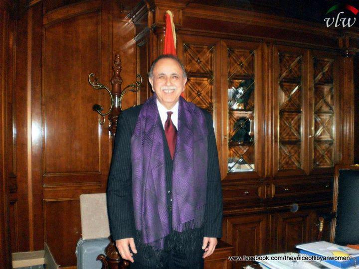 Prime Minister El Keib wearing a purple scarf in support of the Purple Hijab Day Campaign.