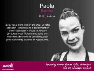 In our 2015 Online Tribute to Women Human Rights Defenders No Longer With Us we are commemorating four women from Sub-Saharan Africa, three of whom were murdered due to their work and/or who they were in their gender identity and sexual orientation. Their deaths highlight the violence LGBT persons often face in the region and across the globe. Please join AWID in honoring these women, their activism and legacy by sharing the memes below with your colleagues, networks and friends and by using the hashtags #WHRDTribute and #16Days.