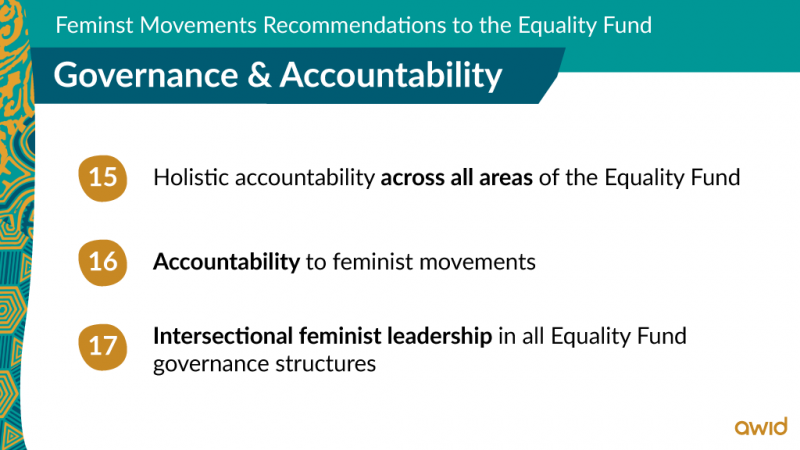 • Ensure intersectional feminist leadership in all Equality Fund governance structures
