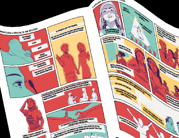 This comic book created by Dee Mathieu Cassendo* in collaboration with the Young Feminist Activism (YFA) team at AWID visually depicts the many creative tactics that young feminist organisers use in their work across different contexts and movements in spite of being under-resourced, and often volunteer-led.
