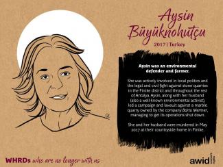 Aysin Büyüknohutçu 20 November 2020 Read in: English French Spanish Category Environment Region Asia West Asia Cause of death / disappearance Killed / Asesinada / Assassinée