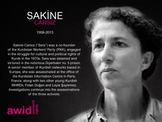 Sakine Cansiz 20 November 2020 Read in: English French Spanish Category Economic, Social and Cultural Rights Region West Asia