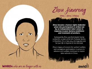 Zhou Jianrong 20 November 2020 Read in: English French Spanish Category Economic, Social and Cultural Rights Region East and South East Asia Date of death / disappearance 2014 Cause of death / disappearance Suicide/Suicidio/Suicide